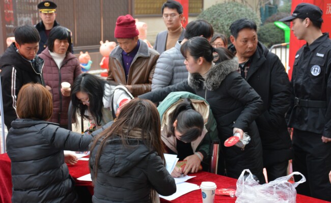 圖為新老客戶做現(xiàn)場(chǎng)登記,有序進(jìn)行。