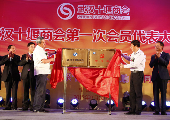 武漢市、十堰市有關(guān)領(lǐng)導(dǎo)共同為商會(huì)揭牌